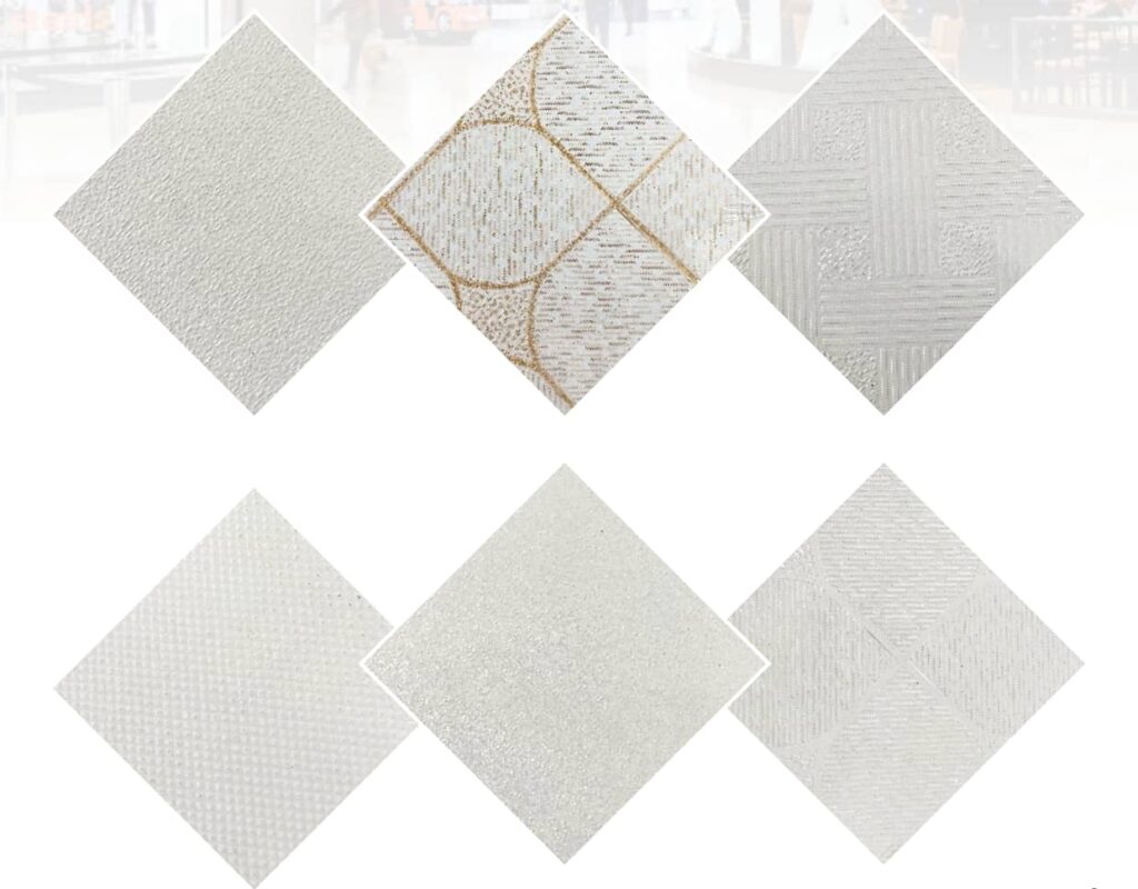 Aerotex Laminated PVC Gypsum tiles are made of incombustible gypsum board, PVC facing as well as aluminum foil backing. It is ideal indoor decorative minerals especially used in areas requiring clean, dust free environment.